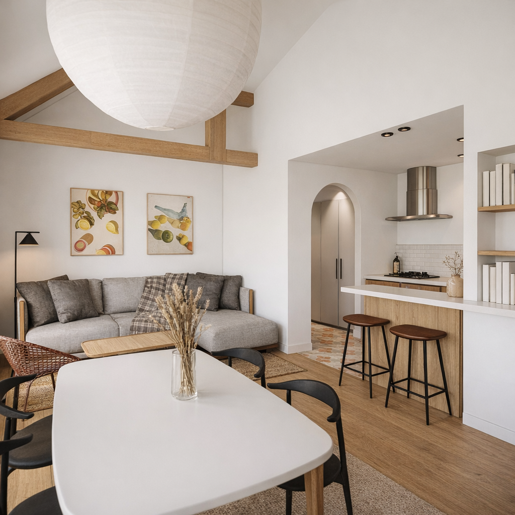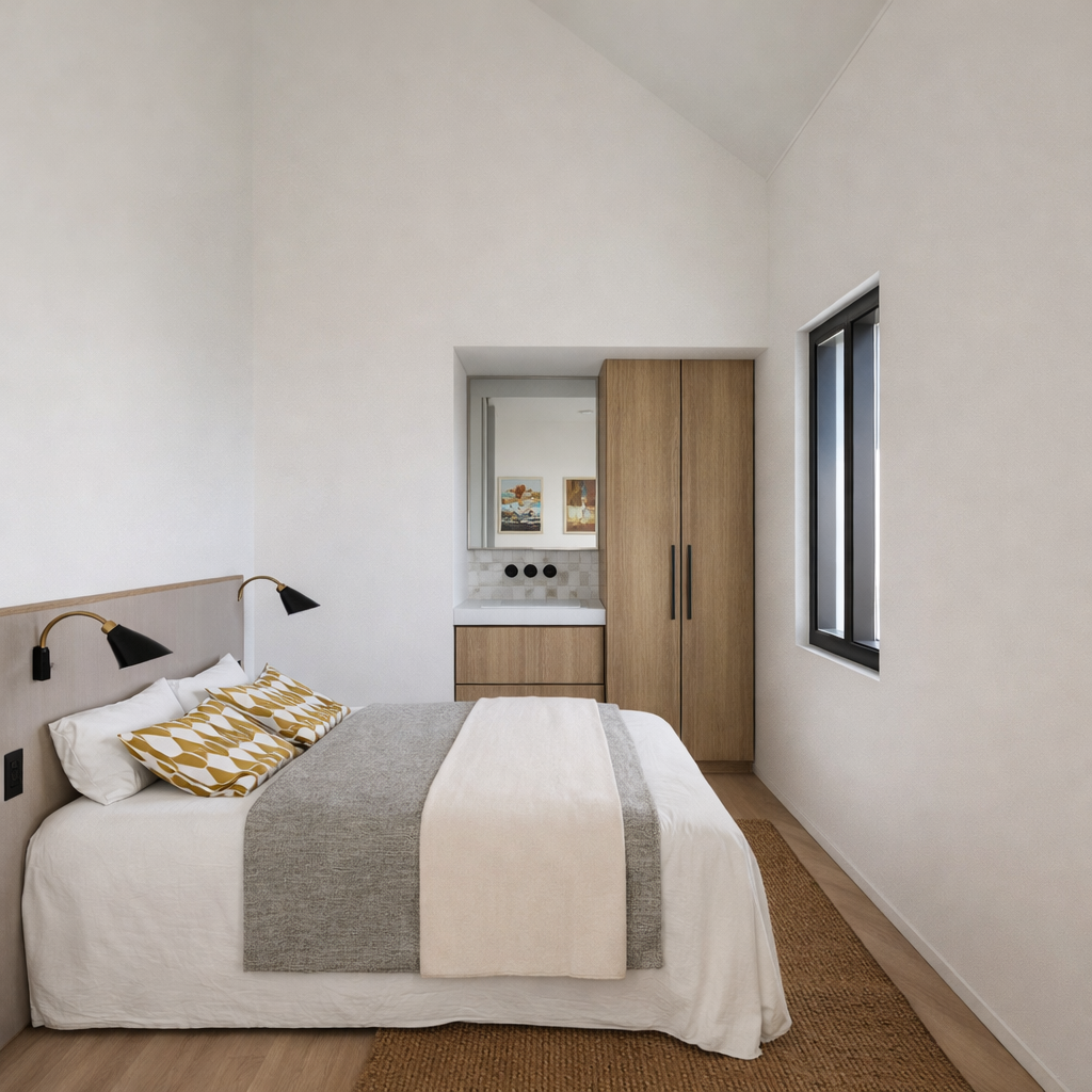 Ce T3 confortable à l’étage offre un cadre intime et agréable, avec deux chambres et deux salles d’eau. La cuisine équipée est ouverte sur un salon / salle à manger lumineux, idéal pour se retrouver au calme. Chaque chambre est aménagée avec des lits simples modulables pour s’adapter à vos besoins.